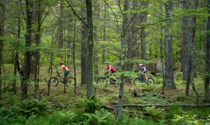 The new mountain biking trails at the Mt. Sabattis Recreation Area in Long Lake blend incredible views with wild trails that pack a punch! Set high over the lake boasting views of the surrounding mountains and waters of the region, you can choose between four different trail routes to carve through. The trail features include a pump section, hair pin turns and a bridge crossing, with opportunities for every level of rider to get in on the fun.