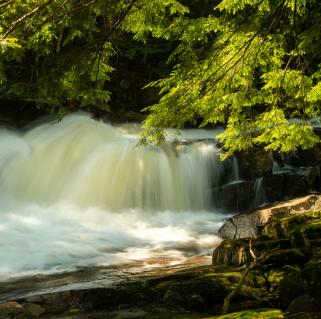 The put-in for the lower dam is off Route 421 south of Tupper Lake, and we pushed off onto a glassy surface beneath a blue sky accented with white clouds. I paddled upstream through the ravine of large moss covered rocks while Wren kept watch from the bow. It was a peaceful evening, but a few birds were singing as Blue-headed Vireo, Pine Warbler, Nashville Warbler, and Magnolia Warbler led us along the channel. A light tapping caught my attention and I spotted a Black-backed Woodpecker working hard on a white pine, and I dug into my dry bag for my binoculars so I could get a look at the male's yellow crown.