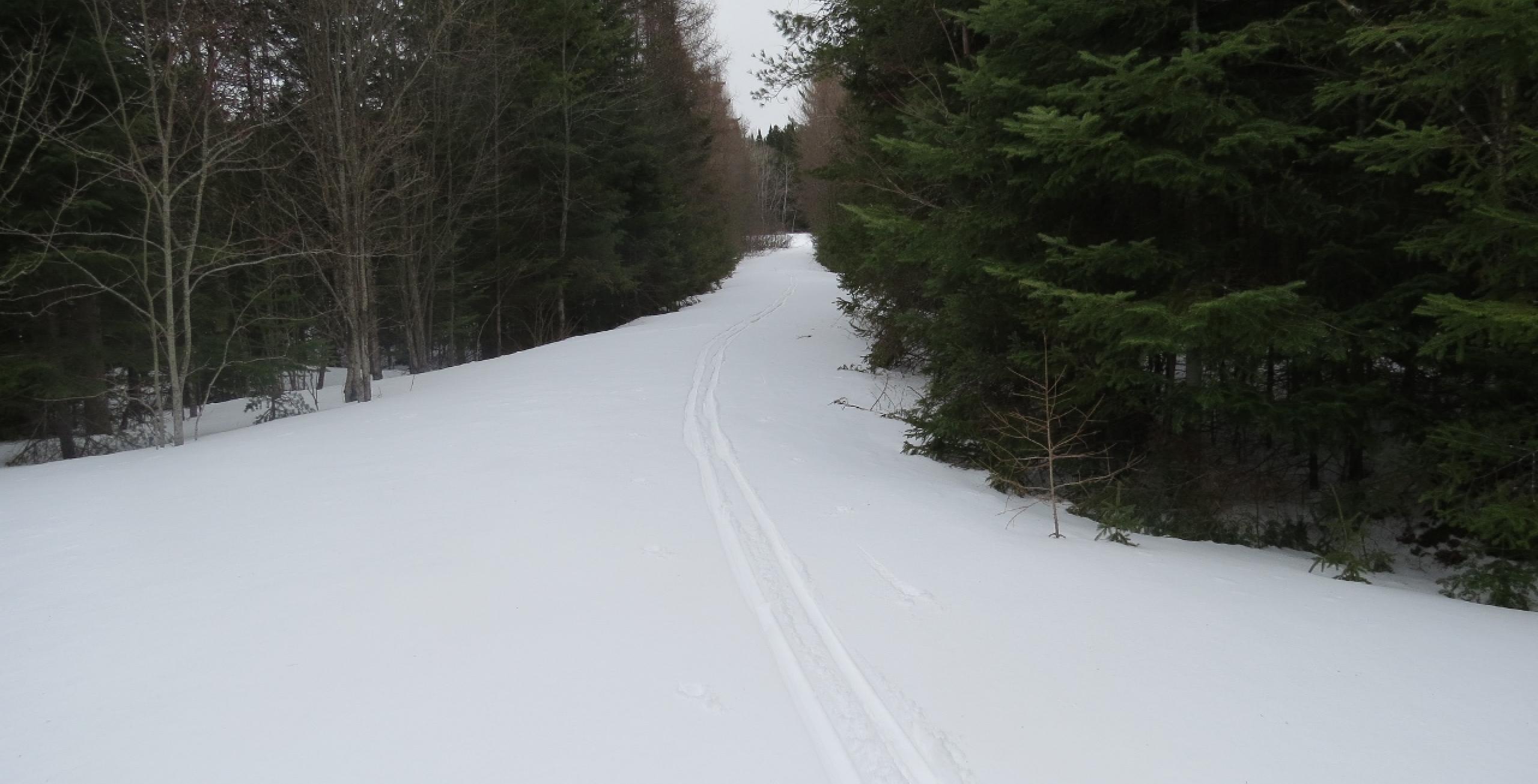Since "winter" seems to be continuing right into spring this year, I had another wonderful cross-country ski trip with terrific snow conditions! I skied on Round Pond Road in the Round Lake Wilderness Area. It was an overcast day with continuous light snow.