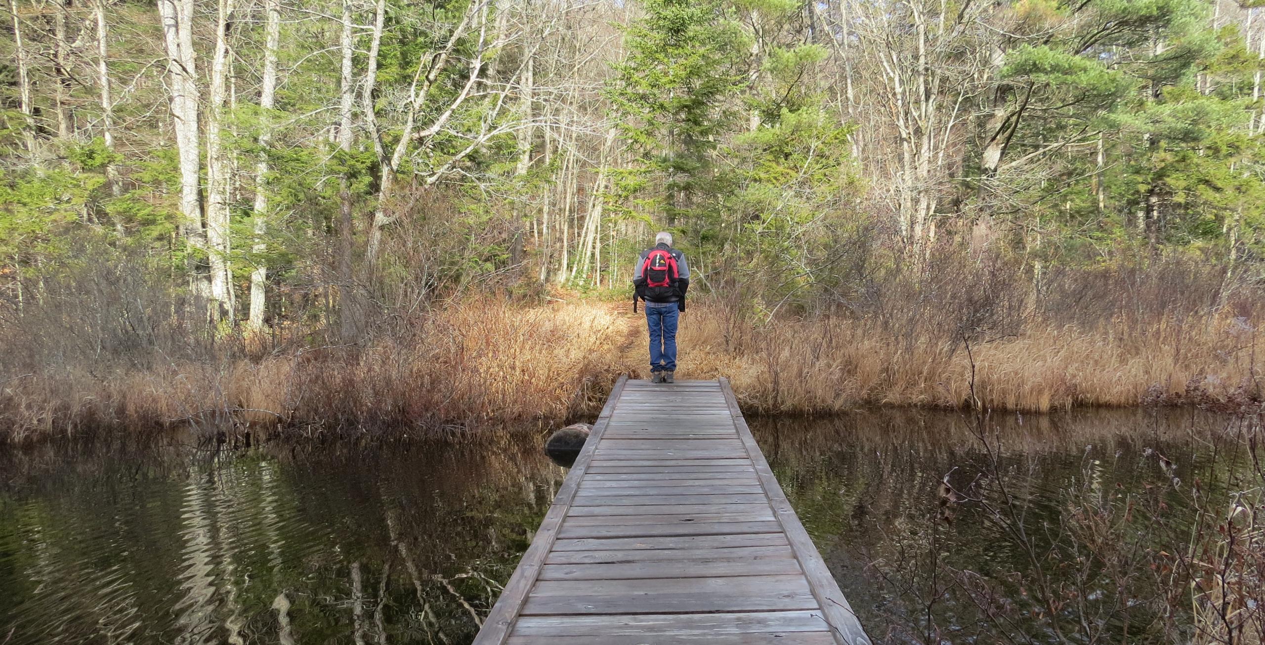 A short walk brings a hiker to a bridge over the outlet of Upper Pond where it empties into Lower Pond.