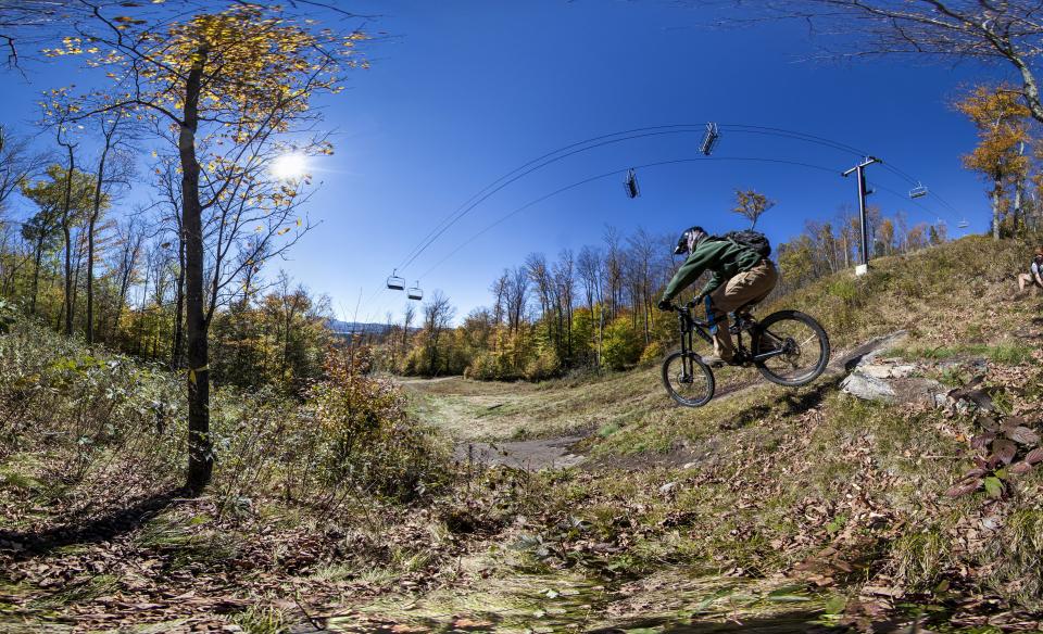 This mountain biking trail forms a double loop which passes through a working tree farm of mixed hardwoods & conifers owned by Lyme Adirondack Forest Company.