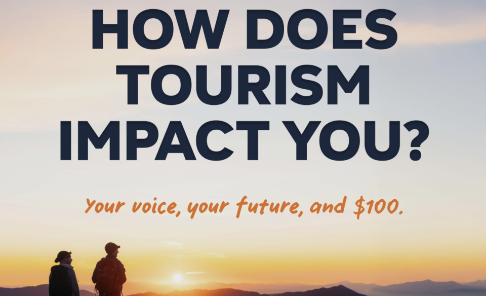We're asking area residents and business owners to share their honest perspective in a short survey. Your feedback will guide how we approach tourism in the future and help ensure the visitor economy works for all of us. It only takes about ten minutes, but it can make a lasting impact. As a bonus, you will be entered for a chance to win $100 when you complete the survey!