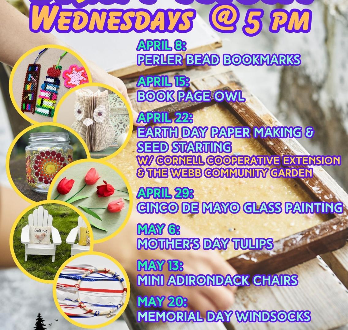 The Old Forge Library, located at 220 Crosby Boulevard continues Craft Nights on Wednesdays at 5pm starting April 8th. We’ll have a different craft every Wednesday through May 20th. Participants are encouraged to experiment with materials, try new techniques, and enjoy the process of making rather than focusing on a single “right” result. Each session offers a chance to explore ideas, share laughs, and connect with others in a friendly, low-pressure environment.