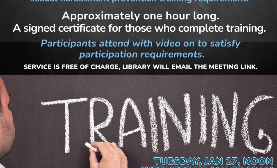To assist organizations in meeting this requirement, the Old Forge Library is offering free sexual harassment prevention training sessions via Zoom. Multiple sessions are scheduled to accommodate a range of availability.