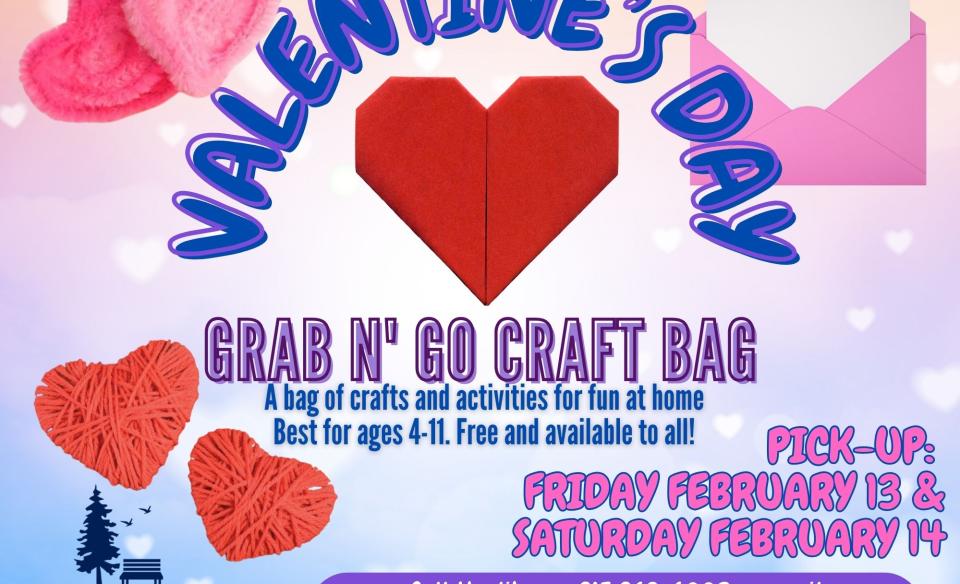 The Old Forge Library will offer free Valentine-themed Grab n' Go Craft and Activity Bags for children to enjoy at home.
