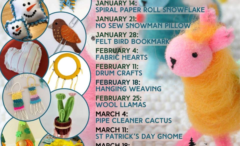 To reserve a spot for one or more craft nights, interested participants may contact the library:
