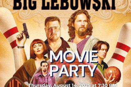 The Big Lebowski Movie Party Thu - Aug 14, 2025 - 7:30pm EDT Join us for our August Movie Party: The Big Lebowski! Jeff `The Dude' Leboswki is mistaken for Jeffrey Lebowski, who is The Big Lebowski. Which explains why he's roughed up and has his precious rug peed on. In search of recompense,...