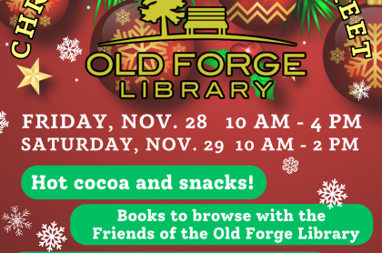 Christmas on Main Street: Festive Activities Await at the Old Forge Library Visitors are welcome to warm up with a cup of homemade hot cocoa, enjoy seasonal snacks, and share in the festive cheer during library hours. Guests may also relax by the fire and take a thoughtful break from the holiday...
