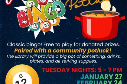 Cabin Fever Bingo and Potluck The Old Forge Library invites community members of all ages to join in its monthly free Cabin Fever Bingo and Potluck series! Designed as a fun, all-ages get-together, offers a lively way to beat cabin fever, connect with neighbors, and enjoy time together...