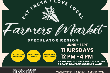 Speculator Region Farmers Market June 18 – September 10, 2026Every Thursday | 12:00 PM – 4:00 PMSpeculator Pavilion & Sacandaga River Park Set in the heart of the Adirondacks, the Speculator Region Farmers Market is a cherished summer tradition where neighbors and visitors gather...