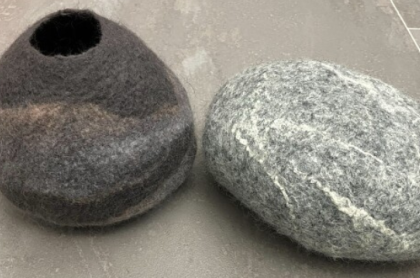 Felted Stone or Vessel Workshop Wet felt a small vessel or stone from wool fibers using the wet felting along with the resist technique. The combed wool fibers mesh together through the movement of your hands, water and olive oil soap, and warmth. The resulting stone will measure 5-7”....