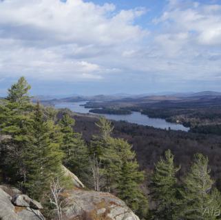 Located a short distance west of the Hamilton-Herkimer County border, Bald Mountain (also known as Rondaxe Mountain, which is frankly a more interesting name) is a great, easy hike for folks who want a nice view and minimal effort to reach it. No wonder it is such a popular day hike. Bald is also easily accessed from the series of trails which run the county line south of Big Moose Lake through Moss Lake, meaning that while it is an easy hour-long hike, it can also be incorporated into longer outings . On our recent trip through Hamilton County and the Old Forge area, Wren and I took the chance to hike Bald Mountain on a beautiful, unseasonably warm day, and I was glad that we did.