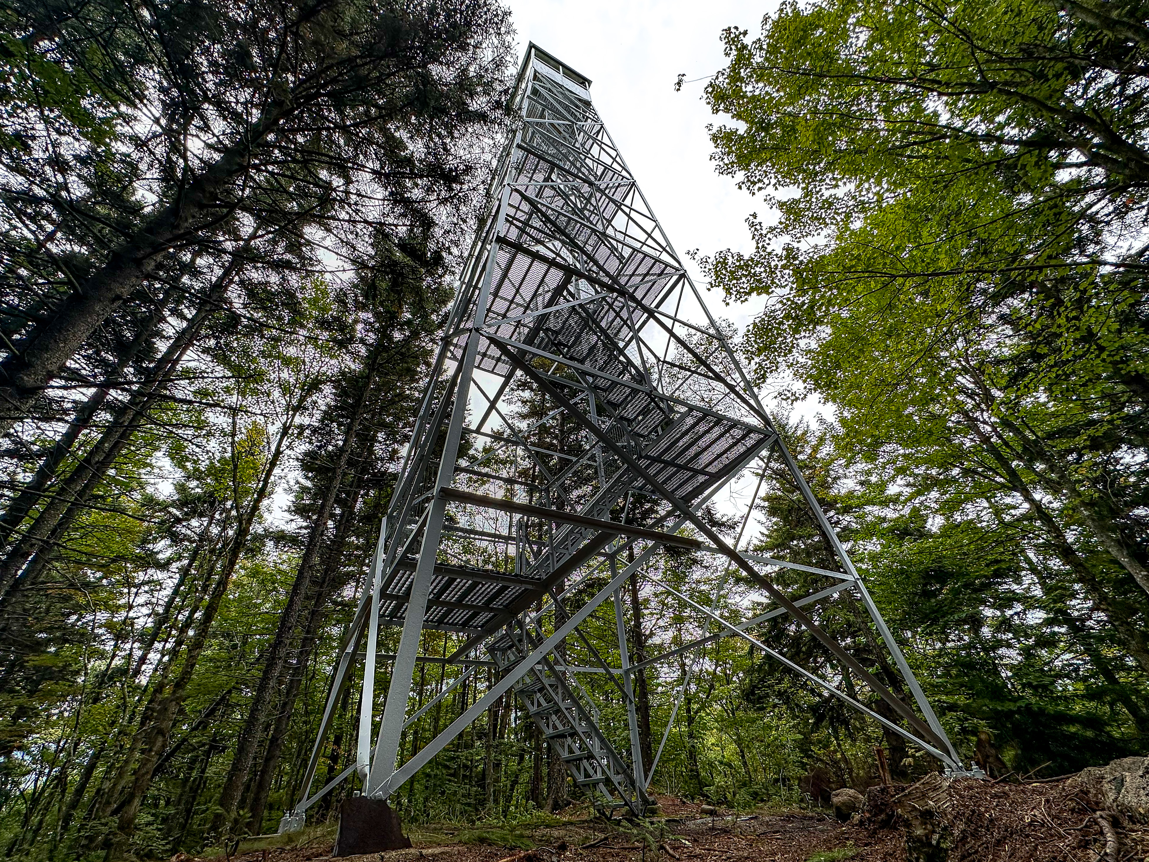 The hike to the Buck Mountain fire tower is a different experience than many trails in the Adirondacks. It’s brand new construction; the ground is soft largely without the exposed bedrock, rocks, and roots that many other trails see. Light blue trail markers guide the way over the course of this 1.2 mile trek.